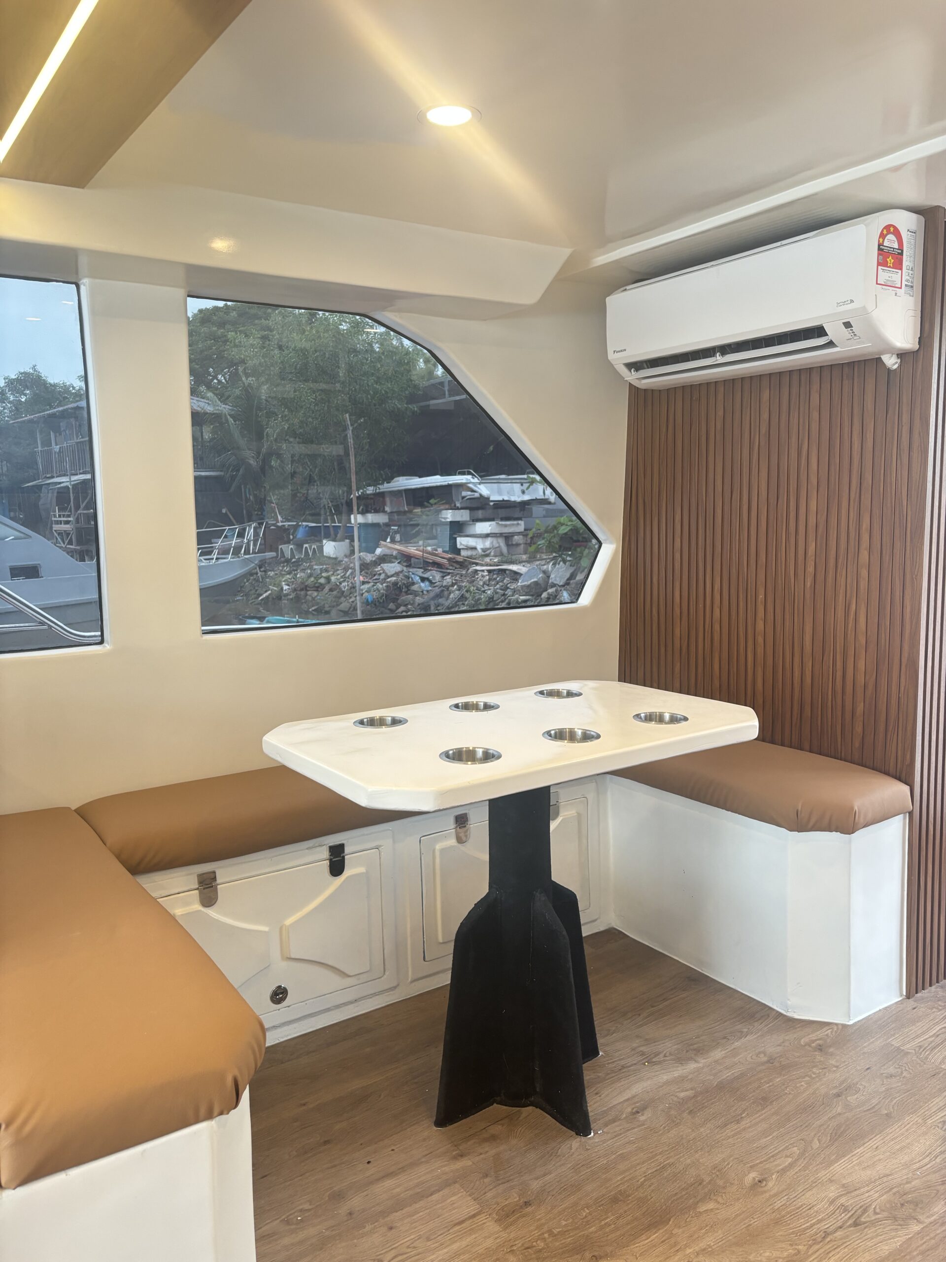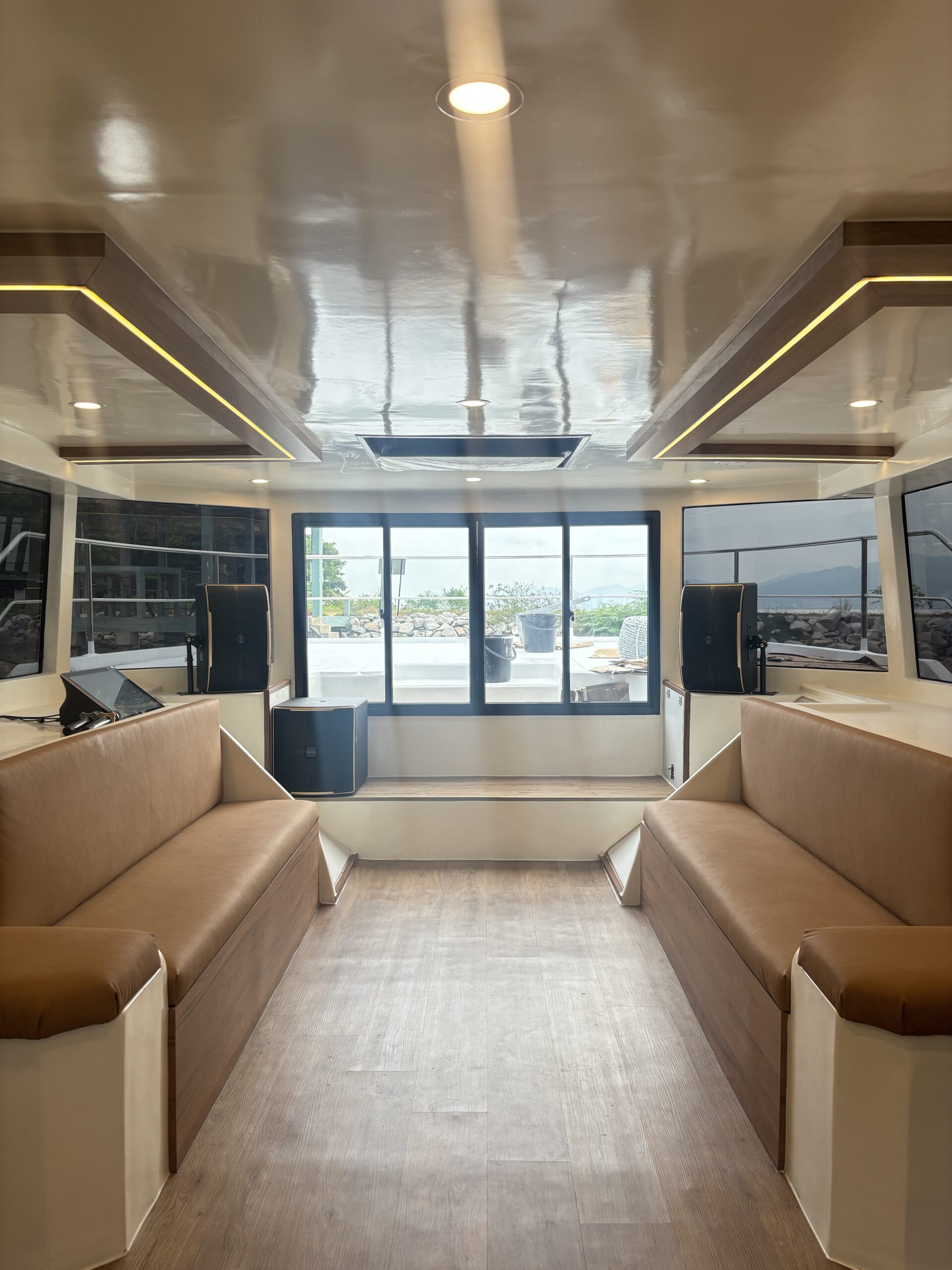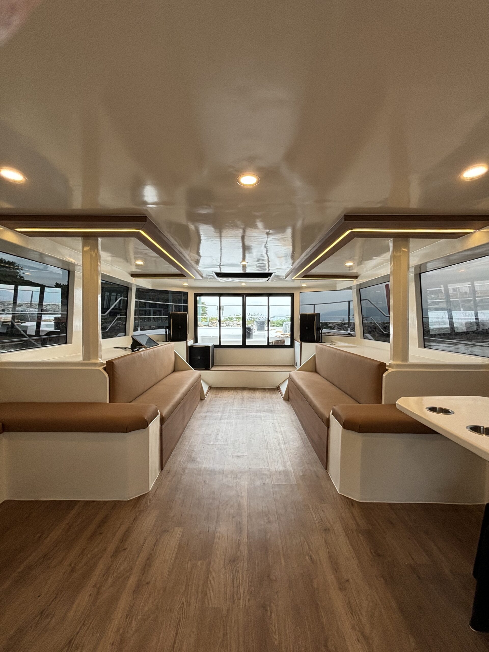 Dejuamon Sdn. Bhd. proudly completed a full customization and interior design project for a stunning catamaran yacht measuring 49ft in length and 23ft in beamwidth. This project was a collaboration with one of the top boat makers in Penang, well-known for their many years of expertise in high-quality fiberglass works. Our scope of work covered a complete transformation of the yacht’s interior—including yacht flooring, sliding doors, windows, and comprehensive upholstery works for all seating, wall panels, and ceilings. We also designed and built two custom cabins with tailor-made beds perfectly fitted to the yacht’s layout for both functionality and comfort.